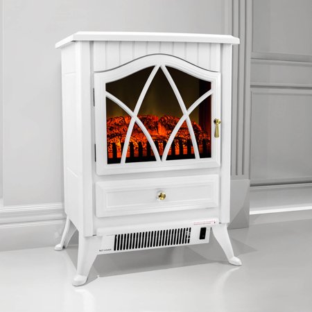 AKDY FP0004 16" 1500W Heat Adjustable Freestanding Electric Fireplace Heater Stove, White